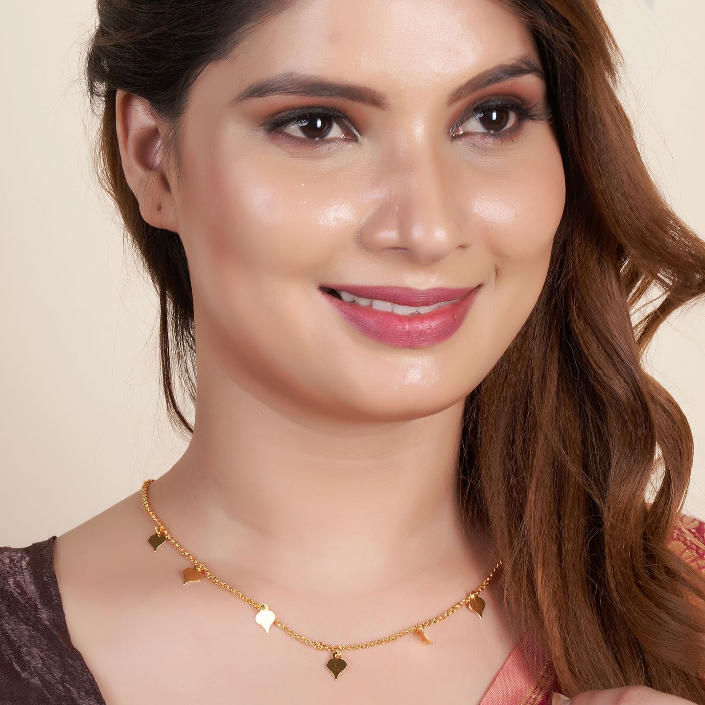 Anzu Dainty Heart Charm Necklace | Demifine Gold Station Design