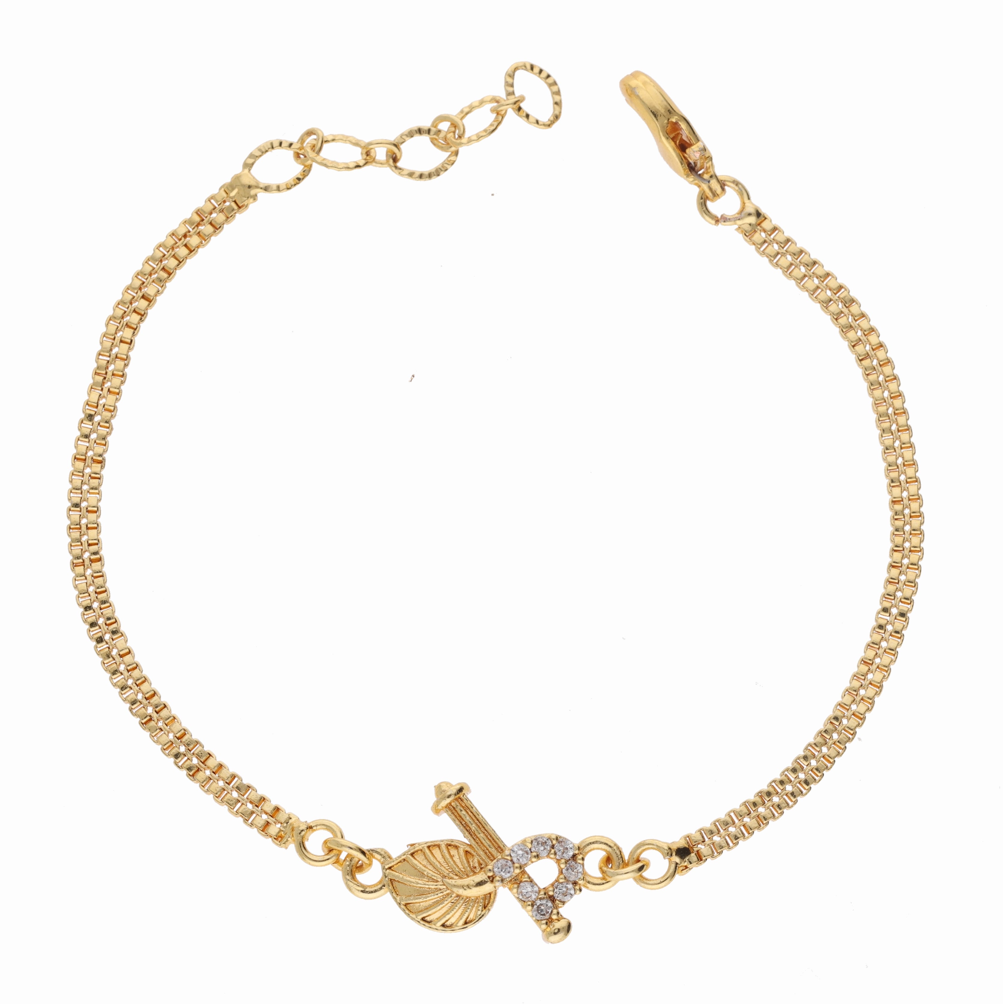 Anzu Om Flute Leaf Bracelet | Spiritual Demifine Gold Jewellery
