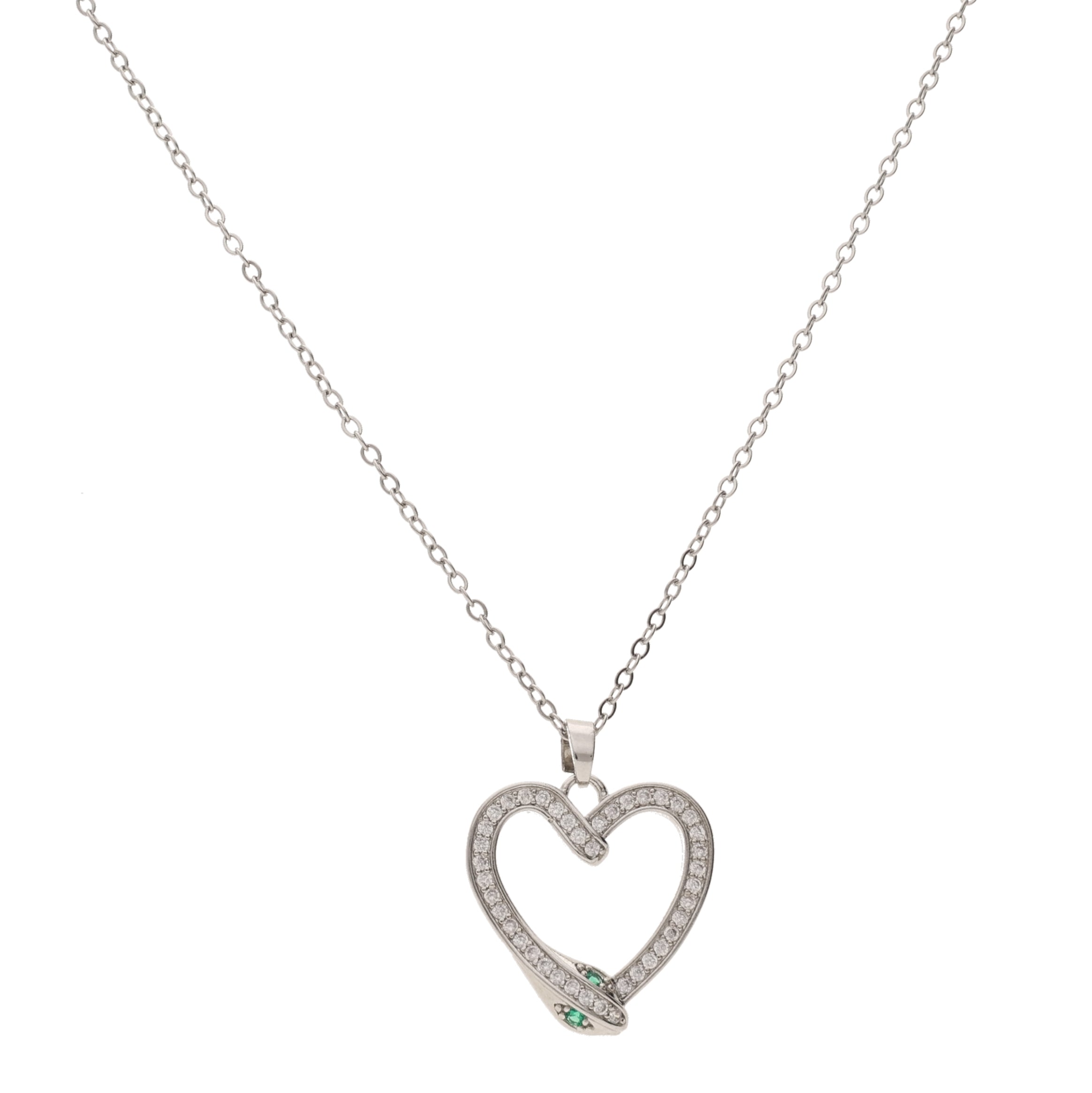 Anzu Silver Heart & Snake Necklace | Dainty Demifine Zirconia Pendant