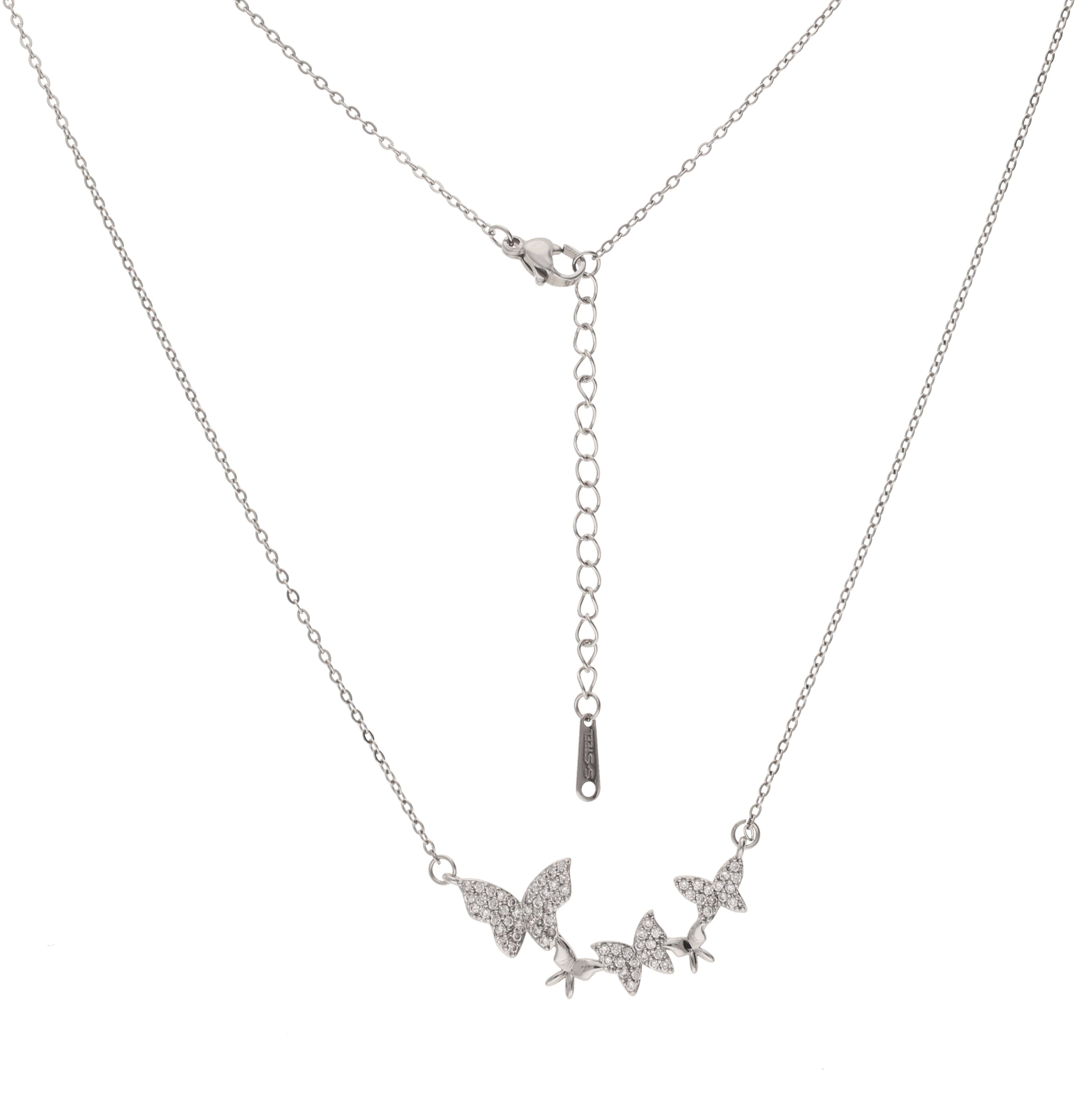 Anzu Triple Butterfly Necklace | Silver Demifine Zirconia Pendant