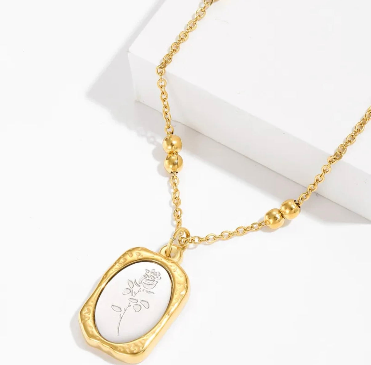 Vintage Bloom Necklace | Gold-Framed Rose Pendant