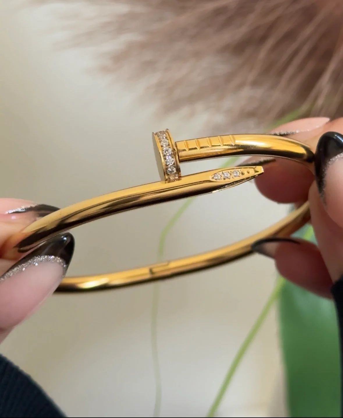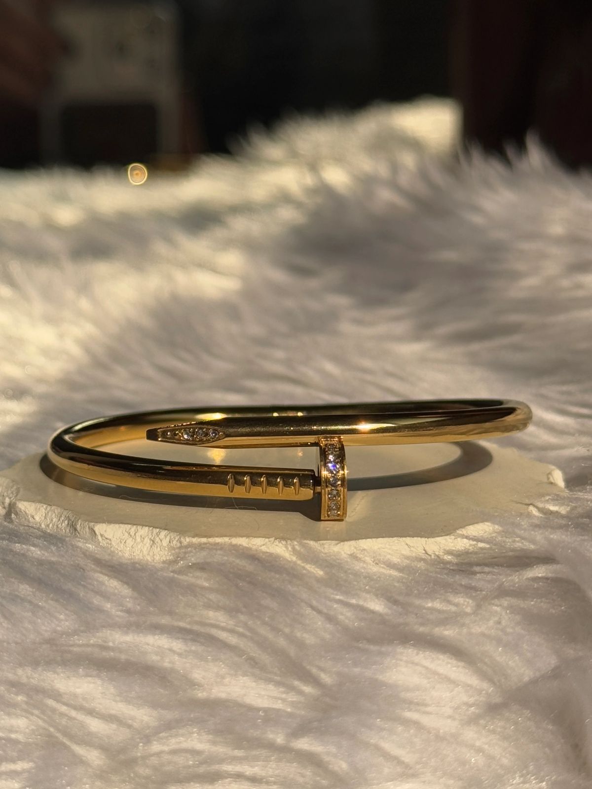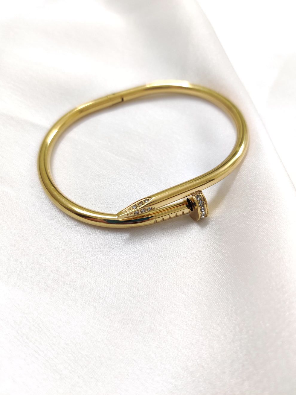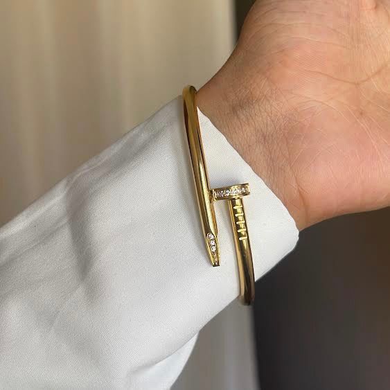 Gilded Grace | Sculpted Nail Bracelet in Diamond-Kissed Gold